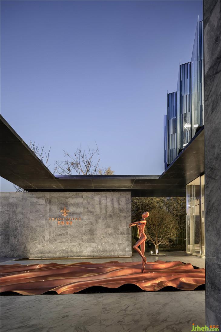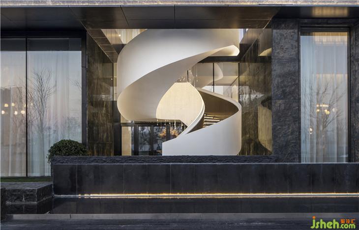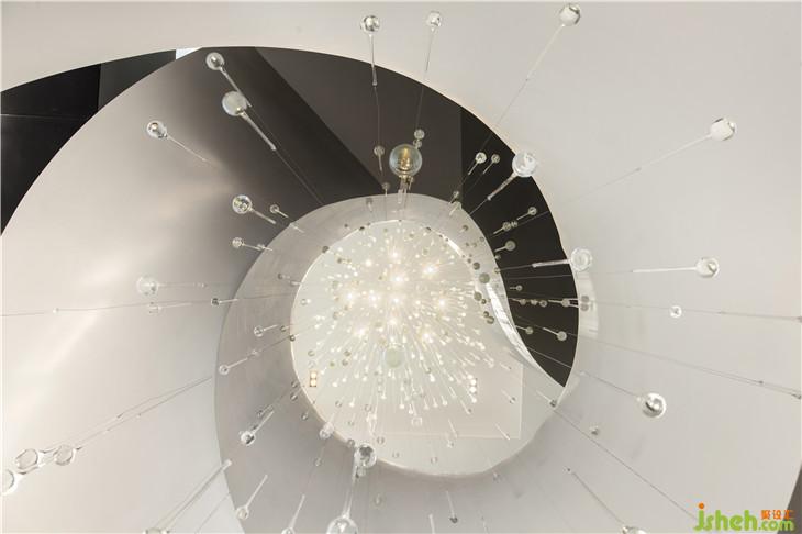 視線隨藝術(shù)樓梯盤旋向上,手覆上冰冷的石磚,身旁的水晶裝置仿佛淅淅瀝瀝降落的雨珠,又忽然暫停,留在那最動人的瞬間。