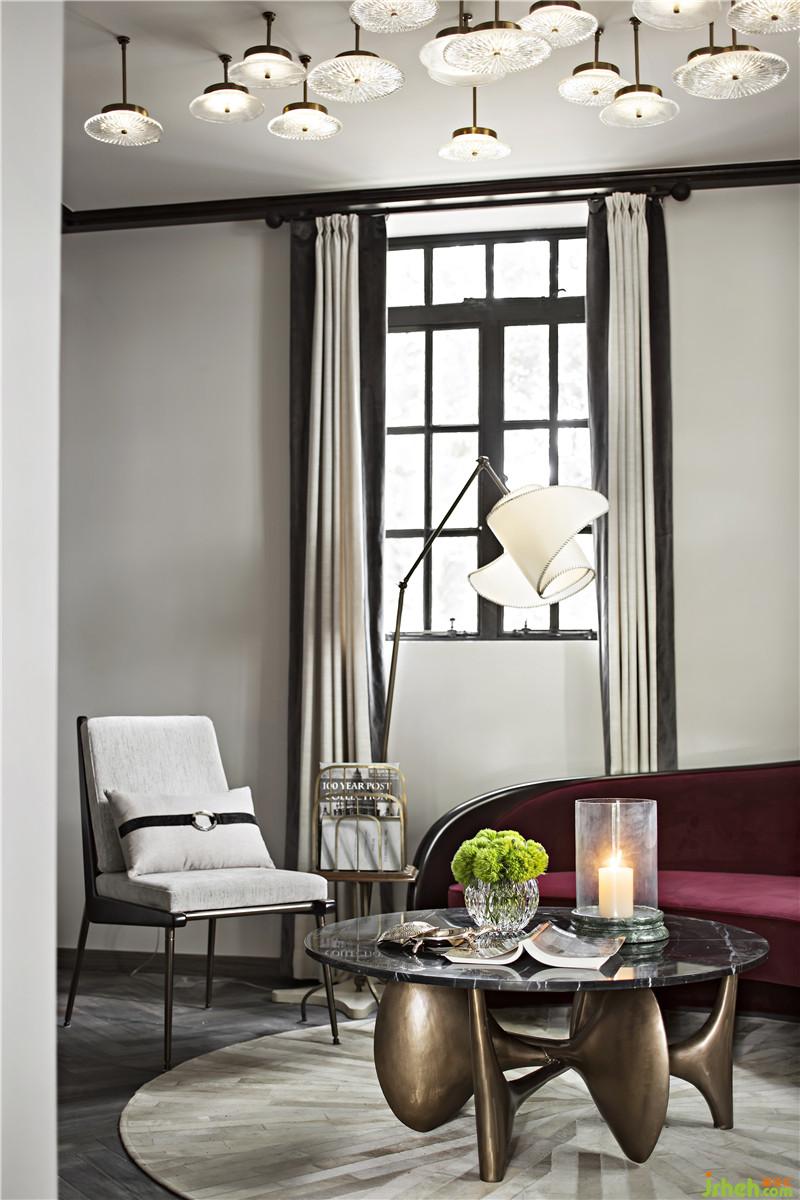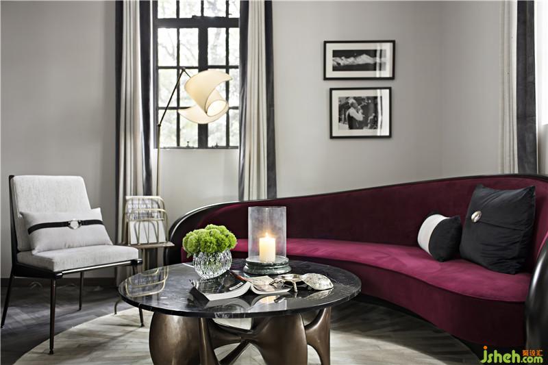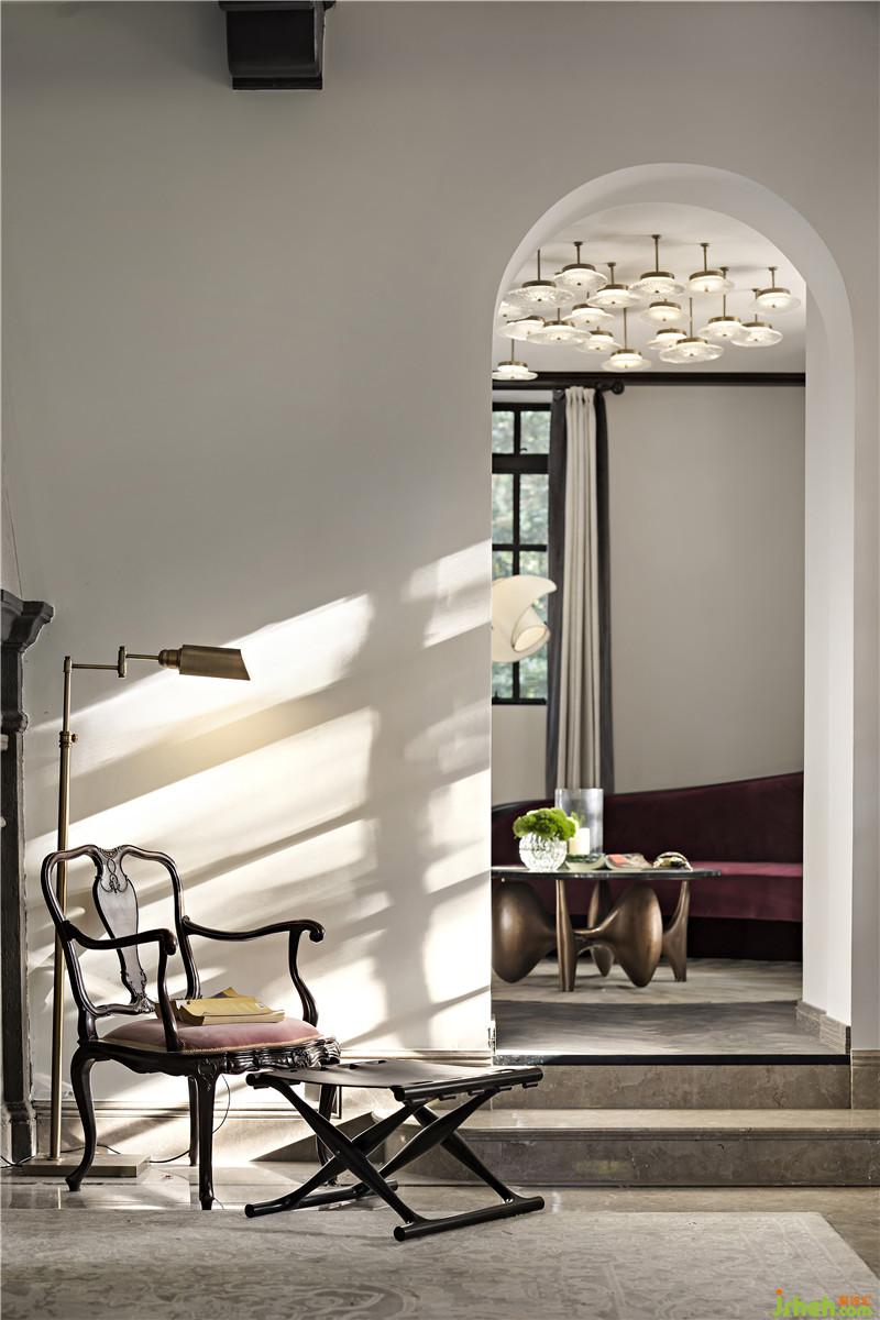 設(shè)計師在休息區(qū)設(shè)置了參差錯落的琉璃荷葉天花藝術(shù)裝置,用現(xiàn)代的手法將東方的美學(xué)意蘊(yùn)揉入空間表達(dá),展現(xiàn)不一樣的東方風(fēng)情。紅色絲絨沙發(fā)則完美的演繹了海派的典雅和高貴。