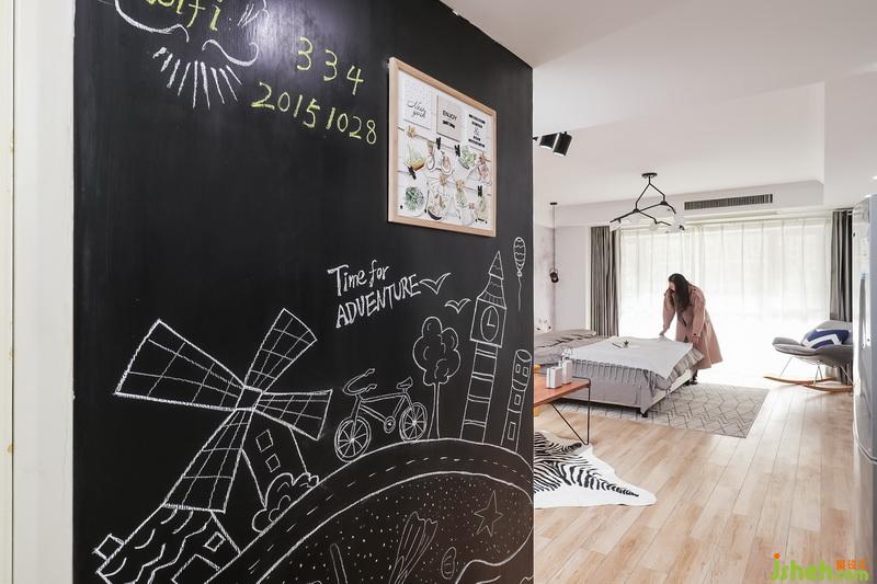入戶設(shè)計(jì)了一面黑板墻,給業(yè)主提供了一個(gè)可隨意涂鴉創(chuàng)作的空間
