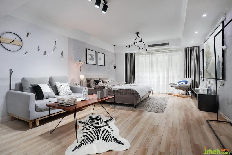 斑馬紋地毯減弱了原木色地板的甜膩。