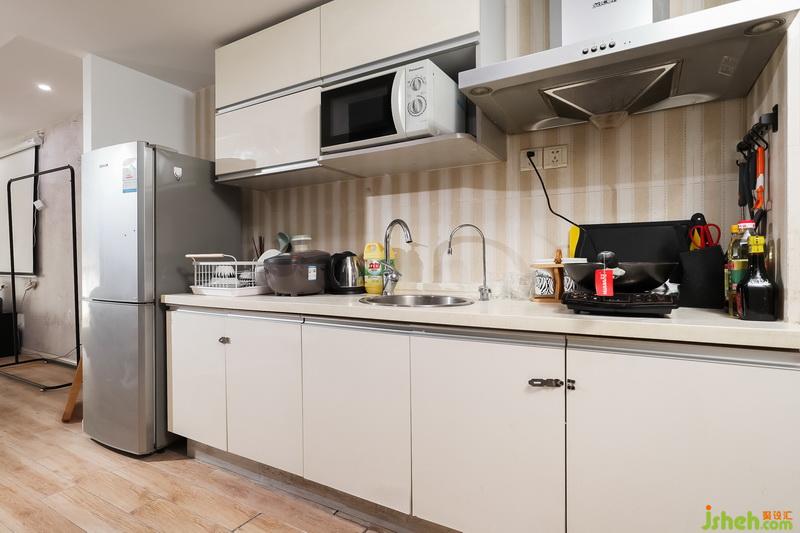 廚房在滿足基本儲(chǔ)藏空間的同時(shí)在軟裝上面做了添置和設(shè)計(jì)