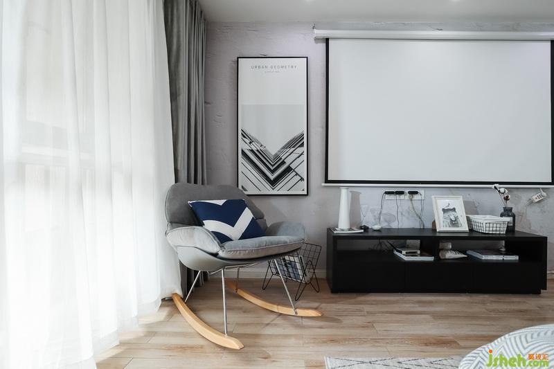 整個(gè)灰色空間的這抹藍(lán)色瞬間使空間有了活力,以干凈利落的線條,帶著清新朗達(dá)的北歐氣息。