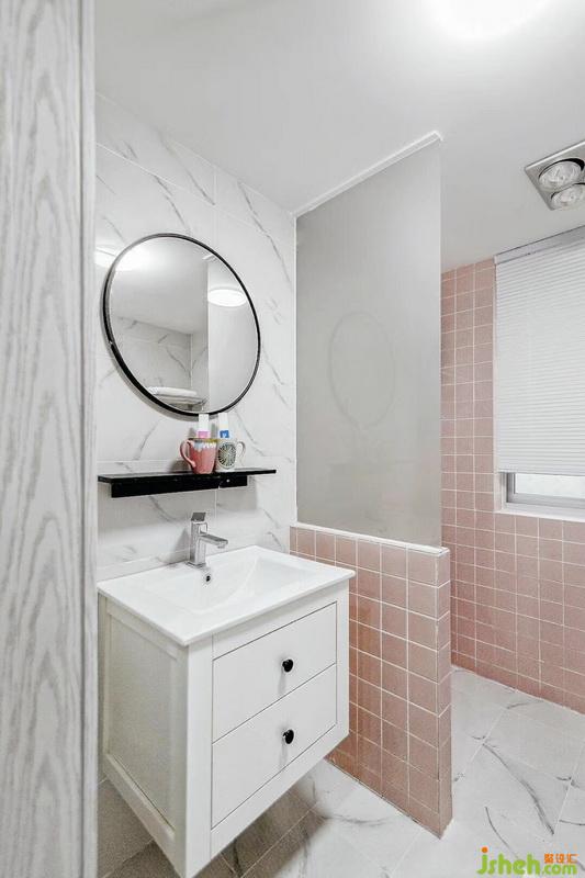 室內(nèi)設(shè)計(jì)師用粉色馬賽克配上半開放的淋浴隔斷,讓小空間的衛(wèi)生間在滿足基本功能之外也能彰顯他的獨(dú)特性。