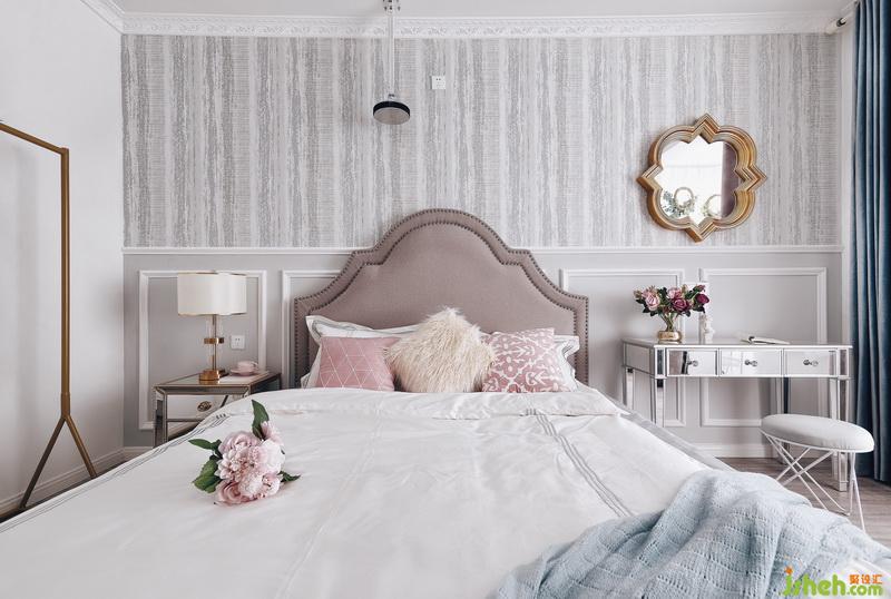 室內(nèi)設(shè)計(jì)師為了彰顯現(xiàn)代美式的簡(jiǎn)單與風(fēng)格,在背景墻上做了石膏線條的造型,墻面底色刷灰,定制的特殊造型的