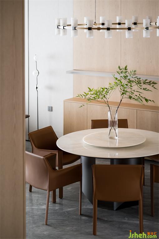 一層客餐廳空間開闊雅致,糅合著秩序節(jié)奏與空靈飄逸感,人隨境而轉(zhuǎn),舒適感極佳。富有層次感的色彩搭配度獨到的空間裁切、雅致的家裝鋪陳,都彰顯著匠心與考究。沒有過多莊重的設(shè)計,獨特的裝飾畫、精美的吊燈和別致的植物,為餐廳增添了一份獨特的氛圍和個性化的魅力。在光影之下盛放靜謐如畫,演繹著一家人三餐四季的浪漫生活。