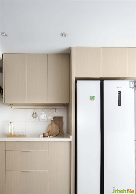 原始結(jié)構(gòu)的完全獨(dú)立的廚房/餐廳/陽臺,經(jīng)過墻體的拆除后,再重新分割組合,滿足每一個(gè)家庭成員在這個(gè)區(qū)域內(nèi)有很好的互動及情感鏈接;同時(shí)為親子關(guān)系提供更開放的空間。
