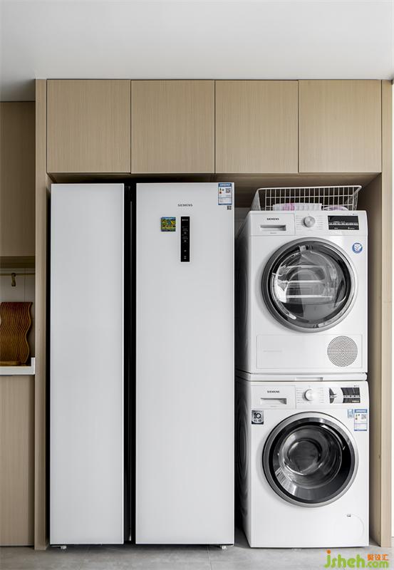 3:家務(wù)模式:獨(dú)立的廚房炒菜+切菜的中廚空間,結(jié)合餐區(qū)水吧區(qū),客廳的側(cè)方小水吧,減少烹飪/飲水/烘培等行為上的動線的互相干擾;洗衣機(jī)/冰箱/小型家電,集中在相對遠(yuǎn)離睡眠區(qū)的空間,降低電器使用時(shí)對睡眠區(qū)的干擾。