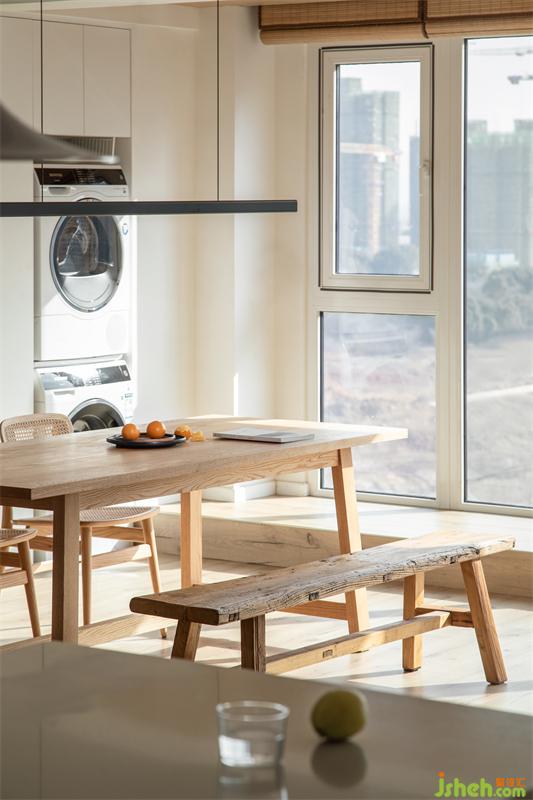武漢家居設計創(chuàng)造就餐、辦公、書吧、水吧、家務一體的輕現(xiàn)代生活方式;