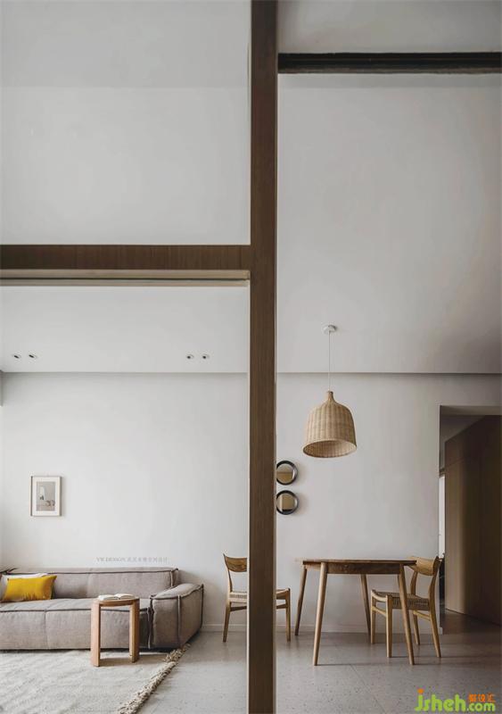 這個戶型的特殊性就在于大部分空間的朝向在北向,武漢家居設計之初功能結構上的調整之后,開始重新思考材質和色彩上的搭配,以及通透的光線如何可以最大化的讓北向的活動廳可以獲得最好的光進入,材質在光的引入后能達到舒適,干凈,明亮的居住感;