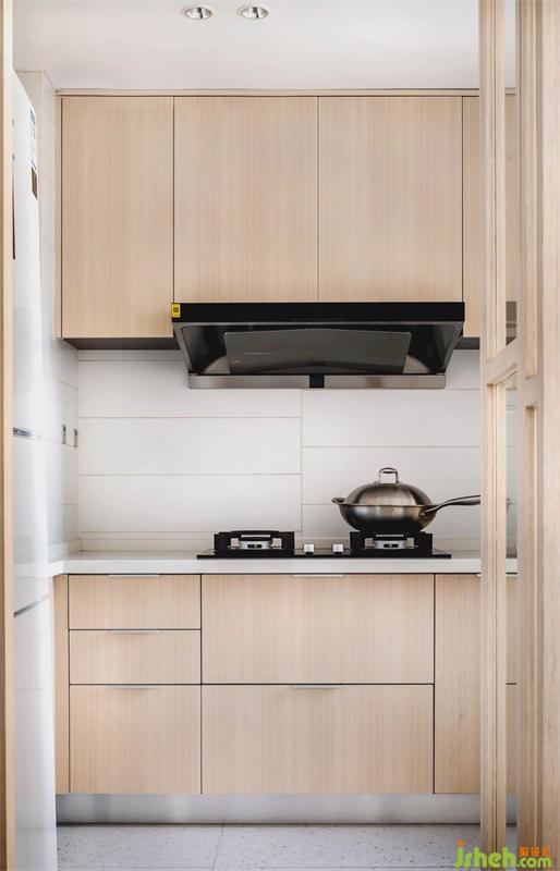 The kitchen is connected in sitting room space, use the vitreous partition that appear, the light that lets the kitchen also can enter the sitting room to blend together.