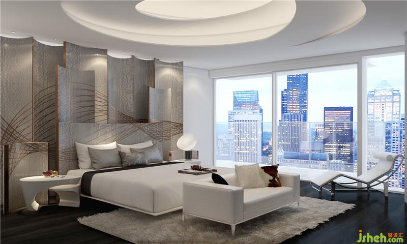 螺旋是宇宙中最奇妙的形狀,星河與人的DNA都是螺旋狀,雙螺旋天花象徵上升的宇宙,在此更加突出精細工藝面,原木牆鑲嵌金屬花紋,靜賞其設計,大落地窗與城市夜景同眠;