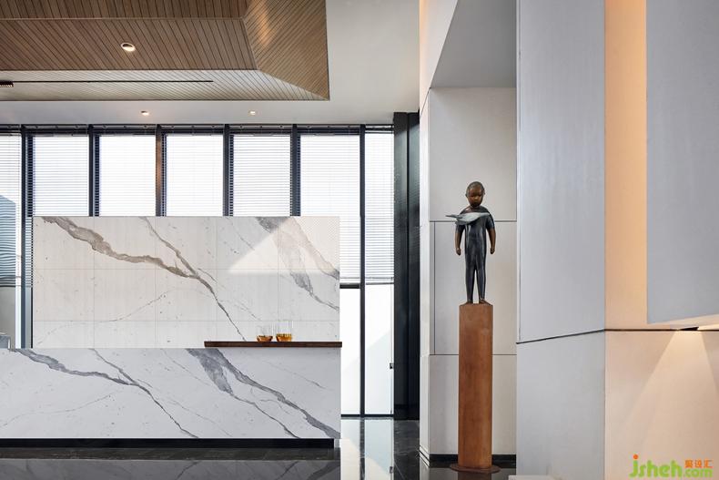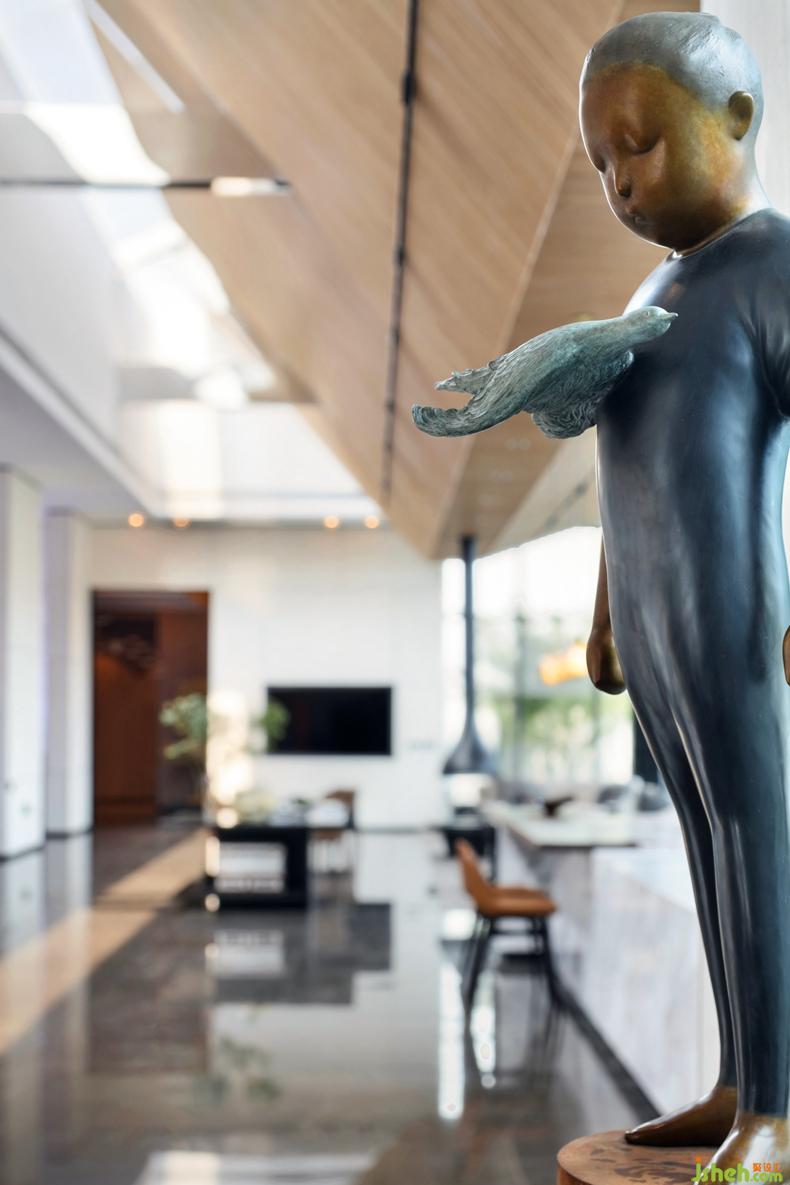 佇立于前廳的原創(chuàng)藝術品《天際》,象征峰層生活的高度。云端之處沉穩(wěn)雅澹的意境,是內心高貴精神的投射,作者為巴塞爾Basel藝術展與香港Art Central特邀參展中國雕塑藝術家李偉與劉知音。