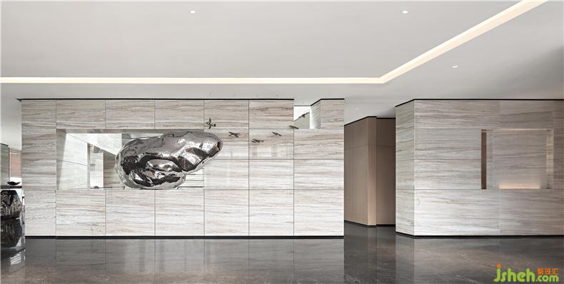 開(kāi)闊的接待空間,藝術(shù)雕塑《飛躍巔峰》把超然的銀色金屬體態(tài)擬于成“山”,與庭院的水景相呼應(yīng),金屬材質(zhì)的飛鳥帶入自然的生動(dòng)感 ,形成“居山而樂(lè)水”的藝術(shù)意境。藝術(shù)雕塑靈感來(lái)源于泰山,國(guó)泰民安為生活幸福的基礎(chǔ),寓意峰層客群對(duì)生活與夢(mèng)想的不斷超越,體現(xiàn)了“讓生活更美好”的美麗愿景。以當(dāng)代手法詮釋傳統(tǒng)文化精粹,造就空間的靈動(dòng)性,生活感。