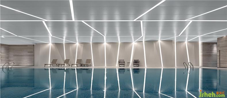 功能齊全的健身室和室內(nèi)泳池是瀾玥匯社區(qū)會(huì)所對(duì)品質(zhì)生活的理解。青島會(huì)所設(shè)計(jì)泳池設(shè)計(jì)靈感源于山石,其形態(tài)猶如鬼斧神工般打磨過(guò)的石頭,菱面鋒芒而有力,切割面或平整細(xì)膩,或錯(cuò)亂而有序,整體形態(tài)渾然天成。每一面都經(jīng)過(guò)深思熟慮,可謂獨(dú)具匠心。