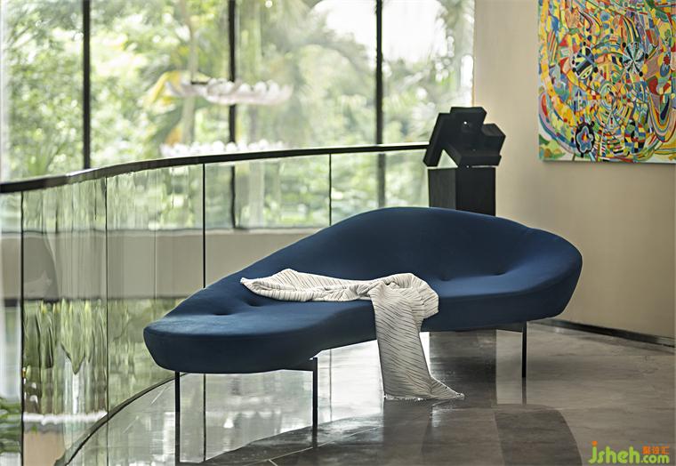 社交中空客廳、西式餐吧、私人影院、酒窖、健身室等功能圍繞著露天泳池展開,各空間之間沒有明顯的界限,彼此形成通暢的流動,不同生活場景自由切換。
