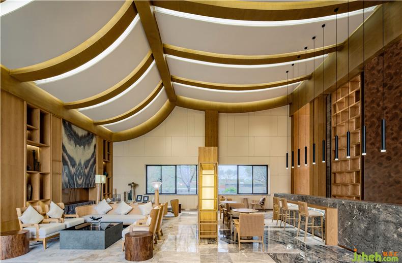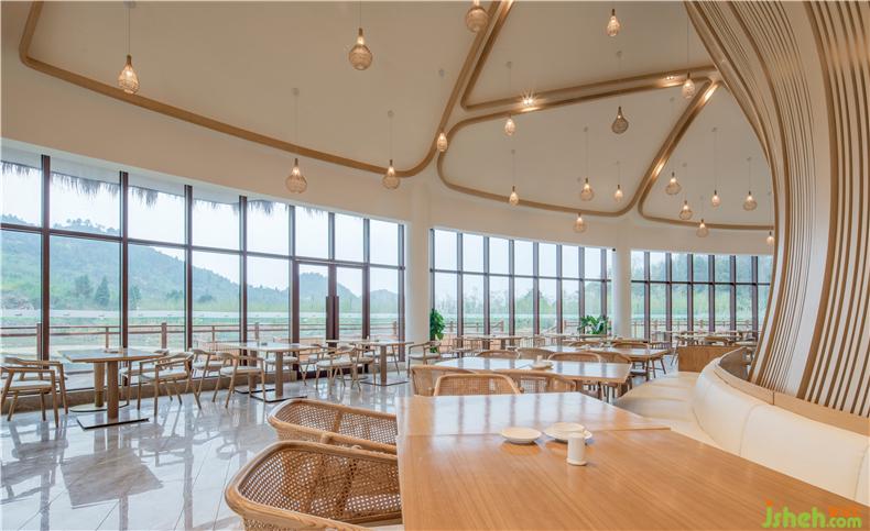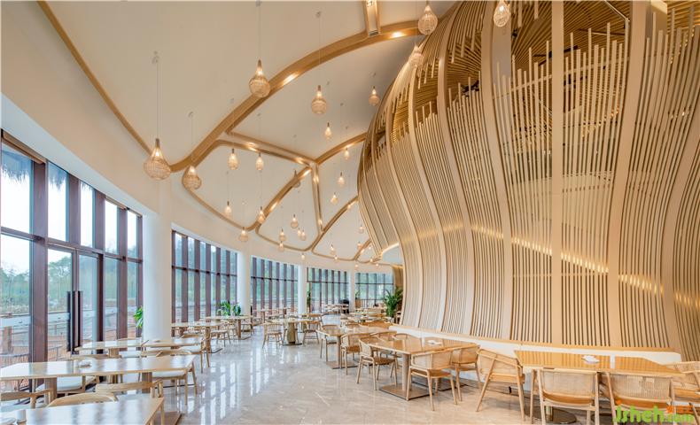 稻田餐廳的空間感、線條感及陳設(shè)藝術(shù)感都能透過“意”去參透東方那種含蓄而深遠(yuǎn)的美學(xué)修養(yǎng)。裝修設(shè)計陳設(shè)色調(diào)與濕潤的木色主調(diào)和諧統(tǒng)一,編藤織物以起伏的形態(tài)穿插于空間的流動之中,演澤空間的色香味俱全。酒店設(shè)計