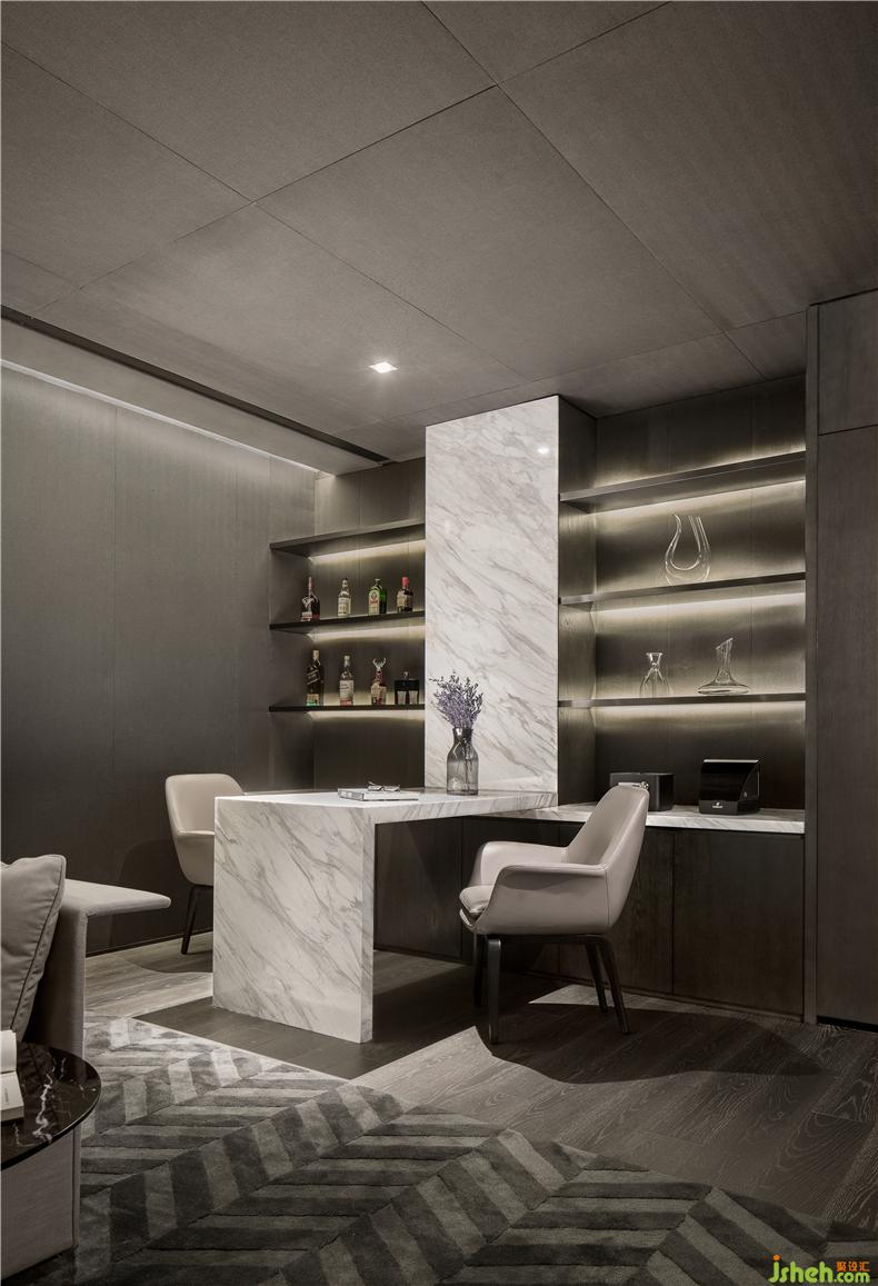 白色大理石的簡(jiǎn)約吧臺(tái),給戶主提供了放松暢飲的愜意時(shí)刻。