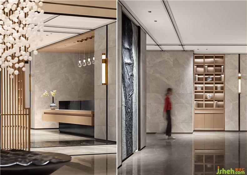 接待處作為整體“場所”的入口,協(xié)調(diào)空間整體的一致性,樣板房設計方正簡明將各功能區(qū)進行勾勒劃分。大面積材質(zhì)鋪陳與去裝飾化明確了空間的節(jié)奏韻律,前臺背景雕塑構(gòu)成了文化底蘊輸出的情感鏈接點,隱約雀躍著深圳這座城市歷史文化和山水之間的聯(lián)系。