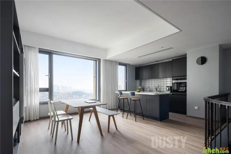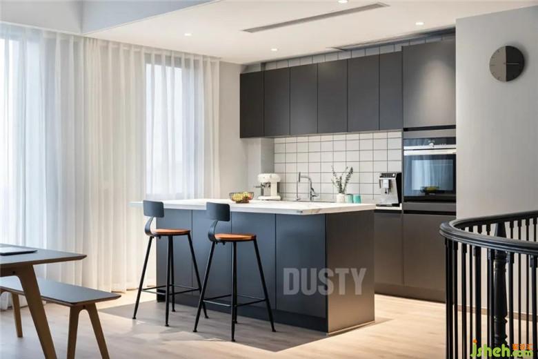 ?裝修公司將客餐廳隔墻打通,開敞的餐廚空間,整個(gè)空間被最大化打開。游走于藝術(shù)與餐廚之間,讓烹飪這件事也變得愉悅優(yōu)雅。