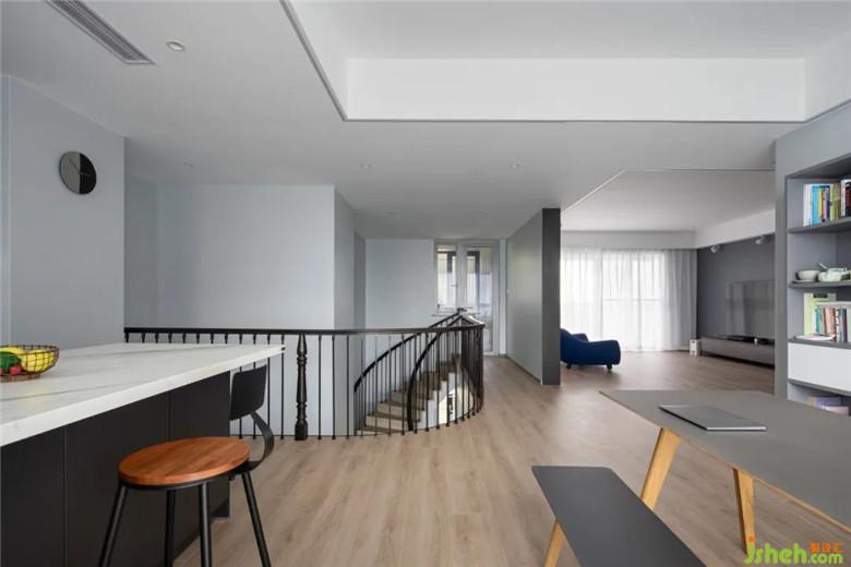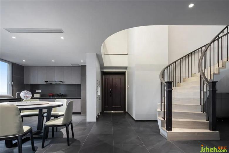 ? 裝修公司設(shè)計的盤旋而上的樓梯,成為了整個空間紐帶,隨著腳步一步步有節(jié)奏地邁動,似有若無間能感受到家的愉悅。