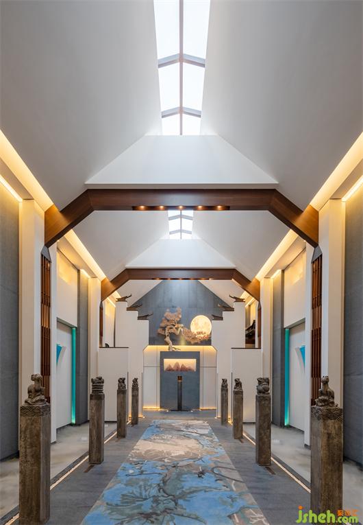 此會所設計項目為主人接待和家族聚會型會所,建筑面積約800㎡。是集餐飲、品酒、茶道、香道、瑜伽、SPA、琴棋書畫等休閑養(yǎng)生功能為一體的空間。以12生肖的傳統(tǒng)文化符號為載體,象征著和諧與平衡;以“空山新雨后,天氣晚來秋。明月松間照,清泉石上流。”的空靈澄凈為基調(diào),表達主人對《山居秋暝》無憂無慮的恬靜生活的向往。
