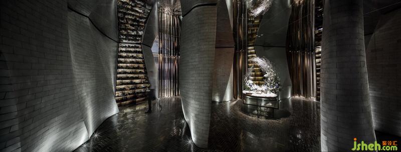 宋·川菜用現(xiàn)代的材料與設(shè)計(jì)手法來演繹的中式餐廳,十萬塊異形的不銹鋼磚與四十萬塊琉璃羽毛構(gòu)成宋餐廳的基本形態(tài)。曲面的形態(tài)打破了一貫的中式餐廳的想象,形成獨(dú)特的空間體驗(yàn)。