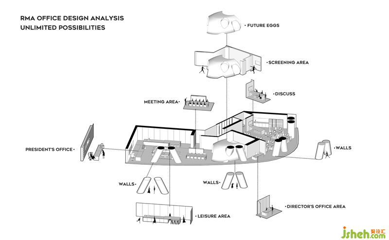 RMA OFFICE The birth represents an important milestone, but also a new era of aesthetics and taste. The design team explores the infinite possibilities of design, combining the traditional office needs of the past with the modernization of the future with avant-garde ideas, and constantly colliding to produce new and vibrant office space.
