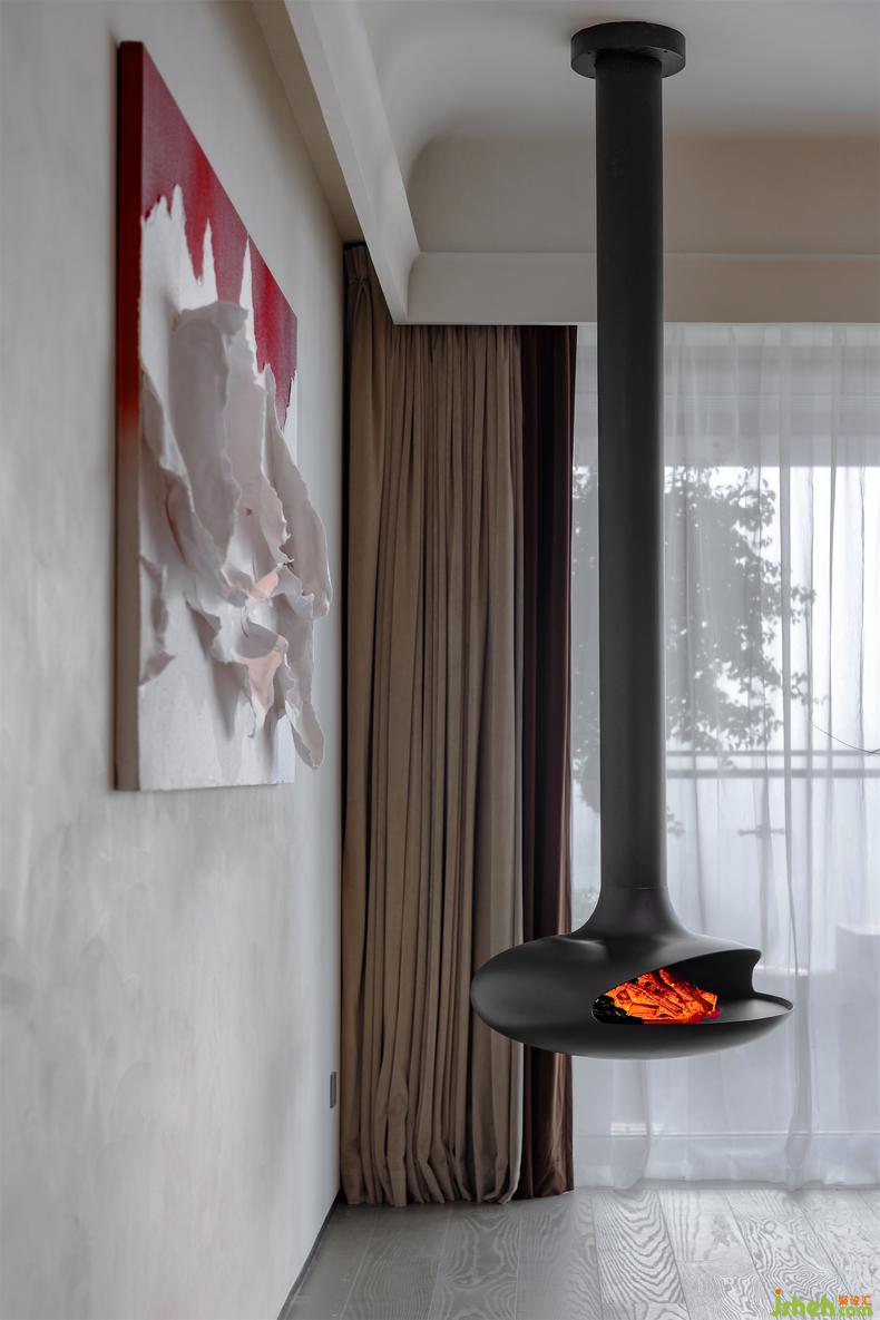 自上而下的懸掛壁爐,肆意展開名為《蝴蝶》的畫作,原始粗狂的灰色背景墻,雕琢出自然堅(jiān)韌的氣質(zhì),同時(shí)又醞釀藝術(shù)的細(xì)膩,如同其他,如同一切,簡而有意,豐盈生活。