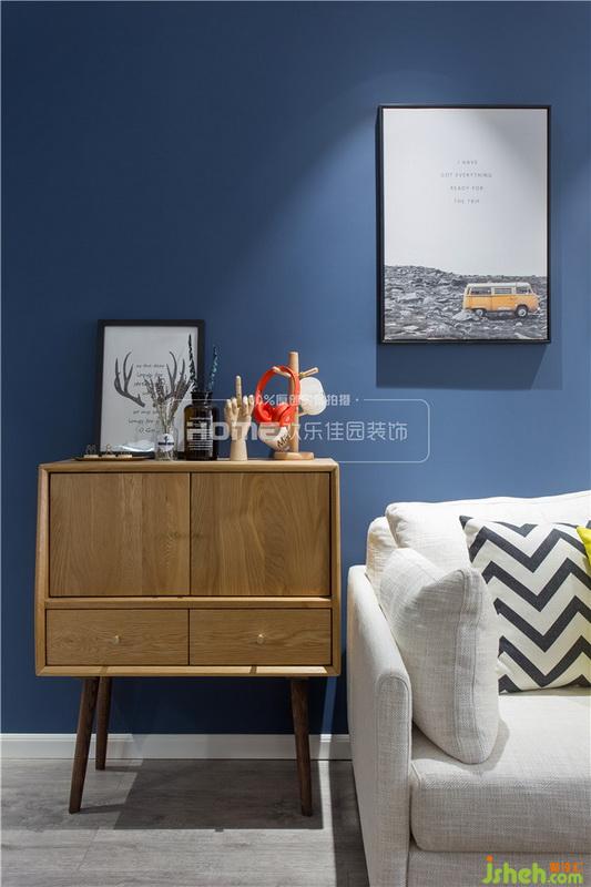 推開門,首先映入眼簾的是那引人沉淪的一片藍(lán),神秘而美好。作為模糊色的一種,孔雀藍(lán)是藍(lán)色中最神秘的顏色,它代表著隱匿。在精神領(lǐng)域里,它更是遙不可攀的神界的顏色,望入其中,你就會(huì)瞬間被這一片濃郁誘惑的藍(lán)調(diào)所俘獲,簡(jiǎn)單的空間布置也會(huì)因它的注入而變得與眾不同。