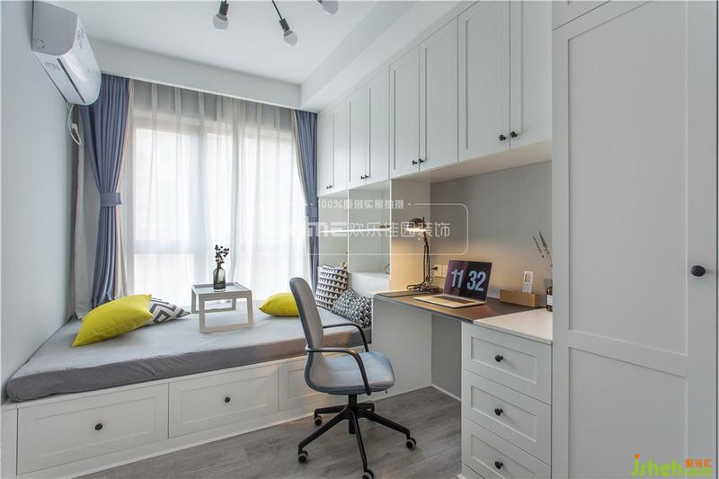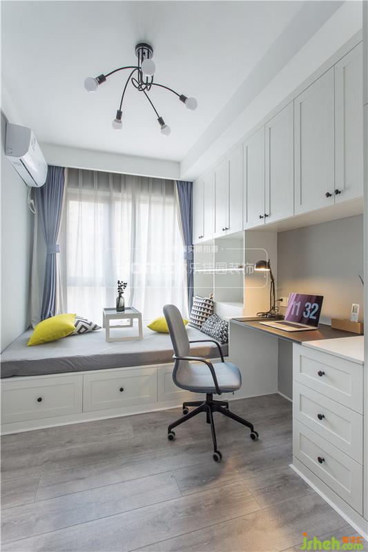 一個書房,辦公閱讀;一個客臥,供人休憩。這是老森和小花期待的家的一部分。于是室內設計師根據(jù)次臥的戶型結構,決定將房間設計成榻榻米形式,整體定制,實現(xiàn)客房功能的同時,滿足儲物需求。書桌、收納柜一體化設計,也實現(xiàn)了書房的功能,可謂是三全其美。