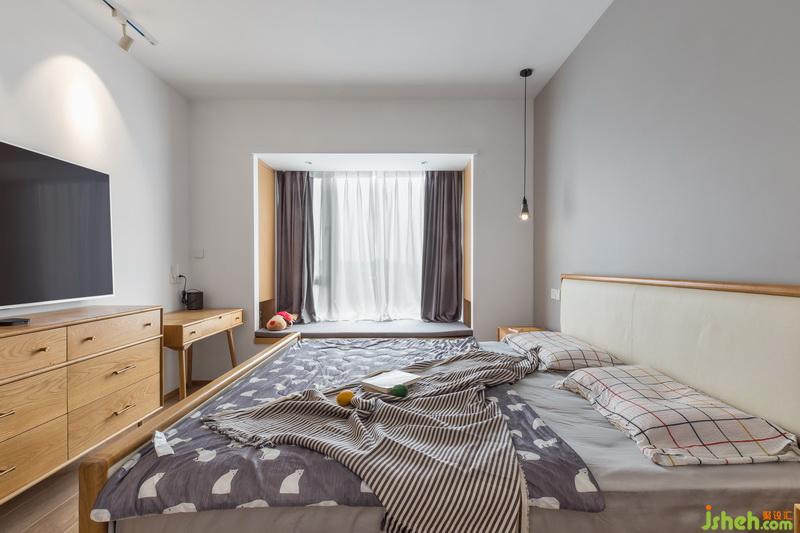 相比于轟轟烈烈的愛情,或許你更傾向于細(xì)水長流的相遇相知!主臥的設(shè)計簡約大方,米白色布藝大床搭配灰色床單,輔以實木床頭柜、灰白色窗簾和“纖細(xì)”小吊燈做點綴,整個空間溫馨舒適。