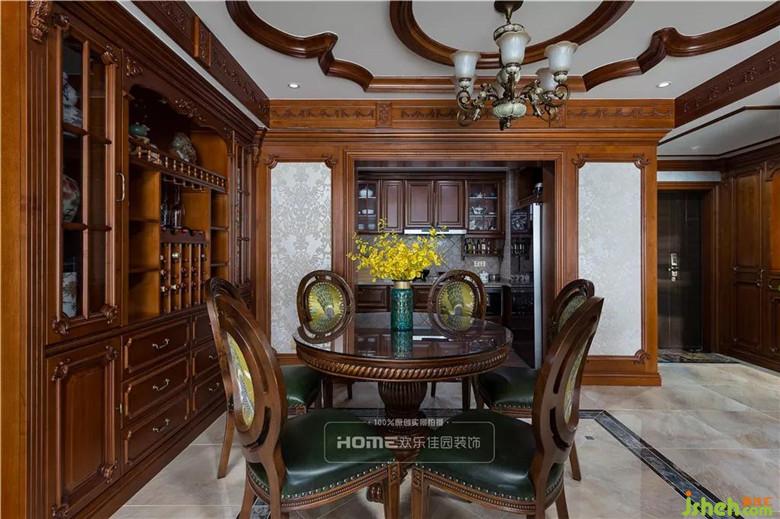 奢華鑲銅邊實(shí)木餐邊柜,與定制的實(shí)木墻框交相輝映,優(yōu)雅與浪漫,散發(fā)著迷人的情調(diào),保持華貴的氣質(zhì)之余,也充滿了變化與活動。