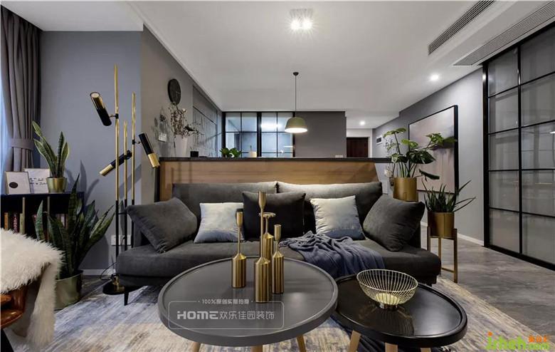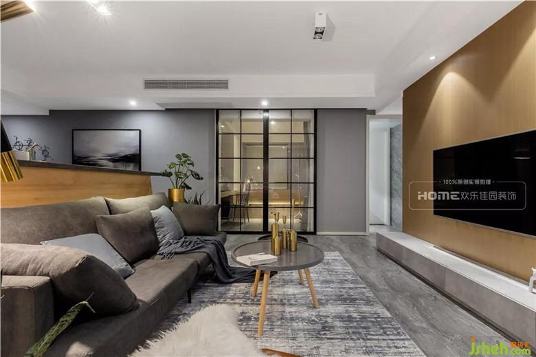 整體空間以灰色為主色調(diào),局部原木色相映襯,加之金屬質(zhì)感軟裝進(jìn)行渲染,不單一不復(fù)雜。電視背景墻設(shè)計成實木墻板,木質(zhì)的溫度與質(zhì)感,更好的起到柔化空間氛圍的作用,提升整體家居的檔次。
