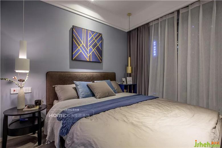 主臥是飽滿而富有內(nèi)涵的,柔和的藍灰色與米白色強化了現(xiàn)代風(fēng)格的概念,形狀各異的床頭柜、抽象現(xiàn)代掛畫,以刺激或奇異的方式組合在一起,巧妙利用顏色的明暗變化,塑造出沉穩(wěn)、空靈的家居體驗。