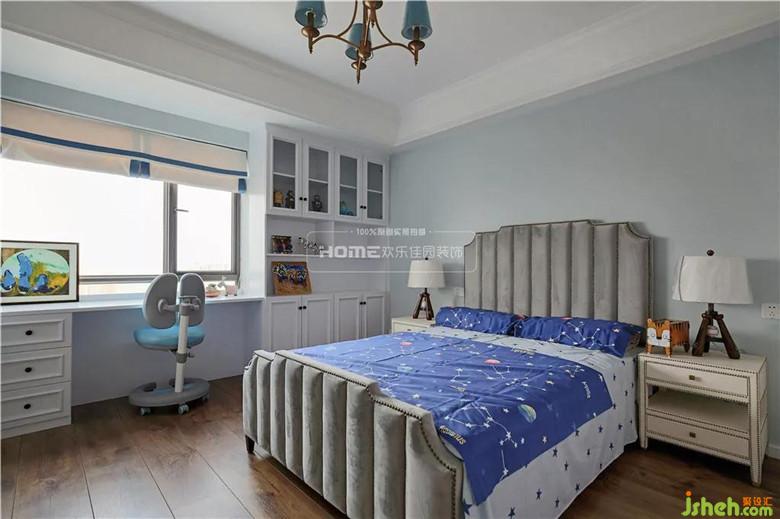配色簡(jiǎn)明,軟裝舒適,讓整個(gè)兒童房充滿活力與溫馨,在許多小細(xì)節(jié)的處理上運(yùn)用大量色彩來裝飾,目的是保證孩子的熱情,同時(shí)也是為了給孩子一個(gè)專屬的美式房間設(shè)計(jì)。