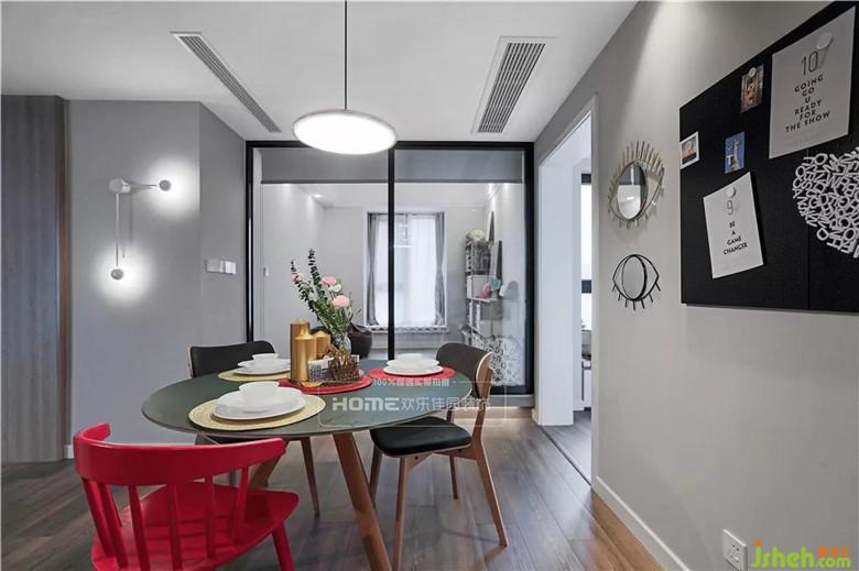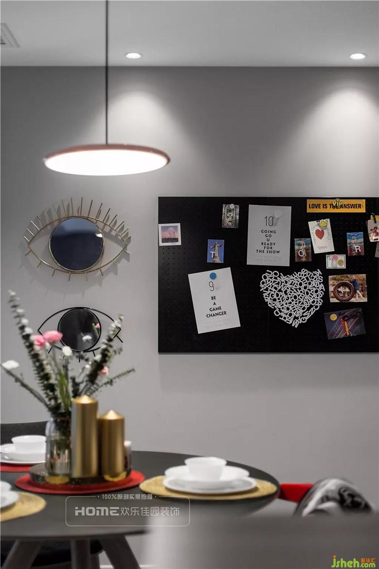 餐廳是整個戶型的熱點(diǎn)區(qū)域,三面連通廚房、客廳、休閑陽臺,視野通透,運(yùn)用簡單而實(shí)用的操作臺劃分空間,設(shè)計(jì)師在別具巧思的安排下,更加注重空間情境的分享與交流。