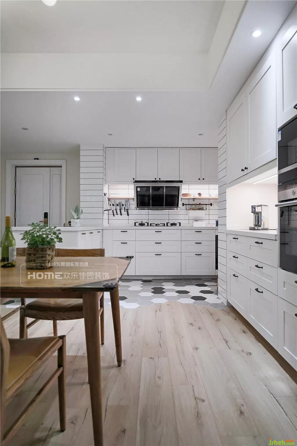 設(shè)計(jì)師征求濮先生意見(jiàn)后,考慮將生活陽(yáng)臺(tái)封閉以及拆除廚房和入戶的墻體。設(shè)計(jì)成現(xiàn)在的廚房和入戶柜體背靠背的雙面柜,一面是“u”型櫥柜,一面是鞋柜,擴(kuò)大了進(jìn)門的視覺(jué)空間,又使得廚房的操作和儲(chǔ)物成倍的提升。