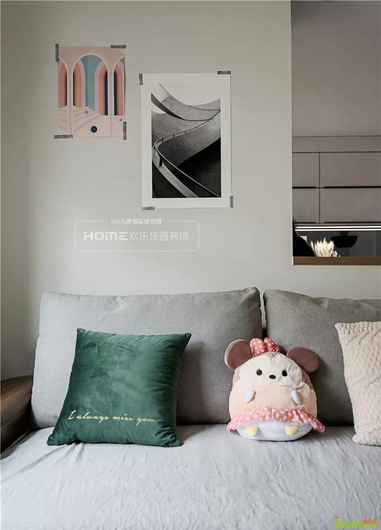 整個(gè)客廳空間以黑白灰定義現(xiàn)代,以原木系的家具界說北歐風(fēng),客廳電視背景墻水泥灰是泡泡的心頭愛,占墻面?的窗戶,自然采光提升室內(nèi)明亮感,襯得室內(nèi)粉與灰,黑與白的精彩碰撞。