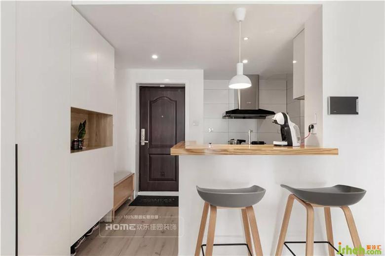在餐廳和廚房連接區(qū)設(shè)計多功能吧臺,精致小巧既能惹人眼球、增加亮點,還可以滿足S小姐各方面的需求,平時吃個簡餐、喝喝茶、看看報,深夜睡不著的時候還可以品品咖啡。