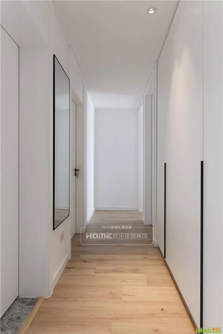 將次臥與過道墻體拆除,利用墻體厚度設(shè)計收納柜,考慮到次臥使用率低,所以S小姐可以置放行李箱等大件物品。