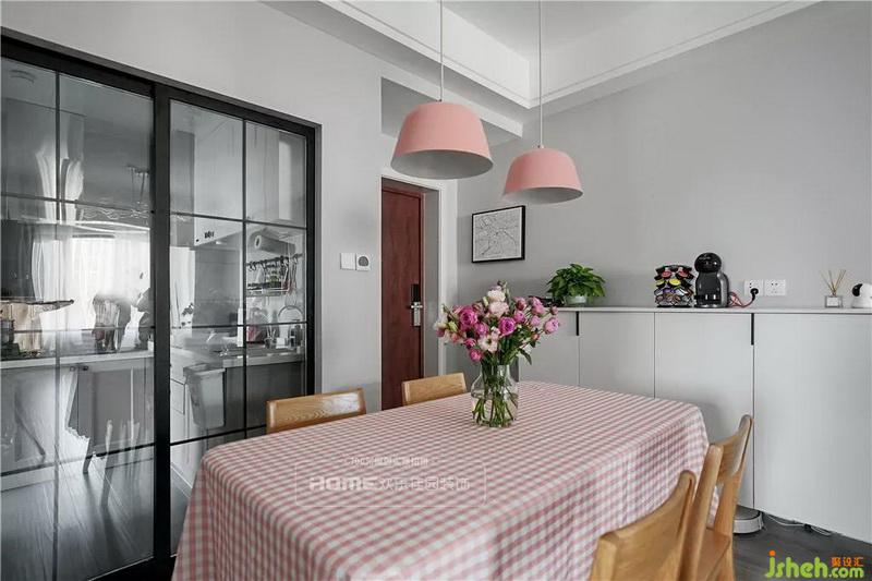 崇尚自然的北歐風,除了木材的主權(quán)宣示外,還需要馬卡龍色系的小物件來點綴,簡約的粉色格紋,流暢的線條,這樣一個不加虛飾的居住環(huán)境,足以讓人忘掉所有的疲憊。