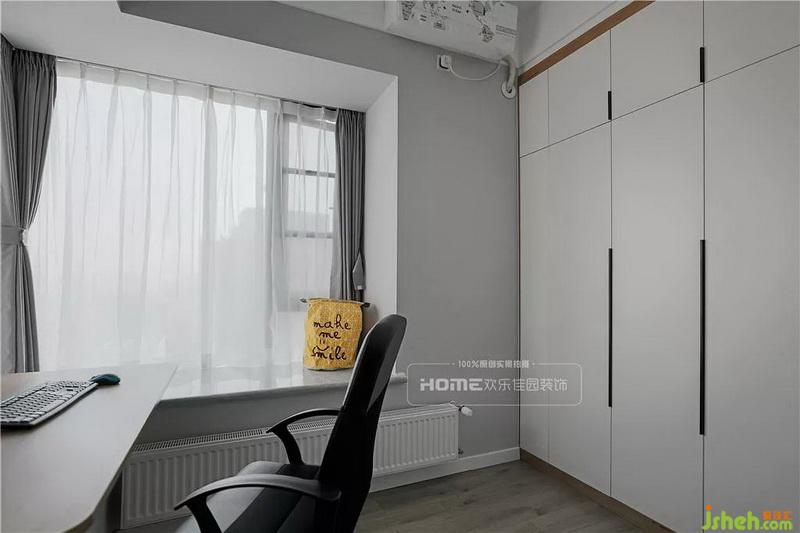 應業(yè)主小姐姐的要求,設計一個兼具書房與衣帽間功能的空間,不僅滿足日常的辦公需求,還增加了儲物功能。