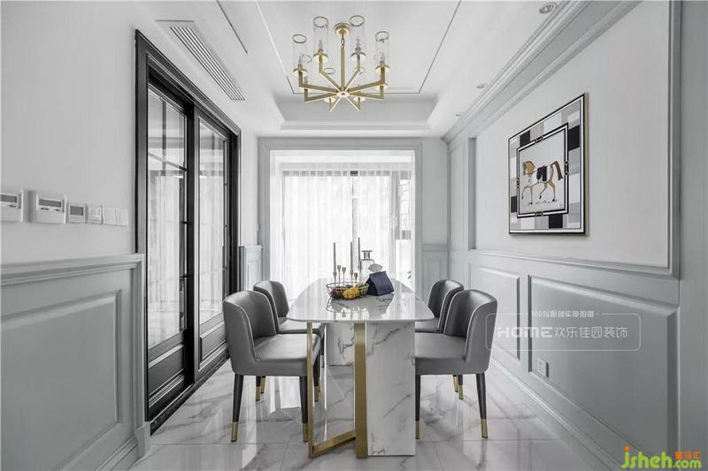 黃銅的高級質感,大理石的溫潤內斂,皮質桌椅的綿柔軟和,美式的定義,輕奢的裝扮,打造出時尚而精致的就餐環(huán)境。