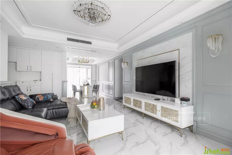一暖一熱的色彩,一剛一柔的材質,相互交融,在剔透的水晶燈的映射下,綻放出華麗的樂章。金屬材質的墻飾和大理石晶瑩的折射力下,光和影的和諧交織,更顯空間寬敞明亮。