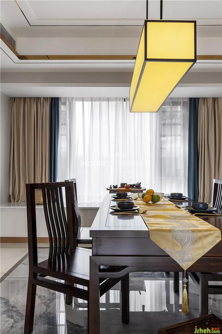 淡彩鋪陳水墨,清淺相宜配色,意境空間簡化成幾何體塊,布局結(jié)合中式的韻味和現(xiàn)代的簡約。拼接設(shè)計(jì)的新中式布藝吊燈,如暈開的水墨般,在燈光的映照下,層次分明,意蘊(yùn)盡展。
