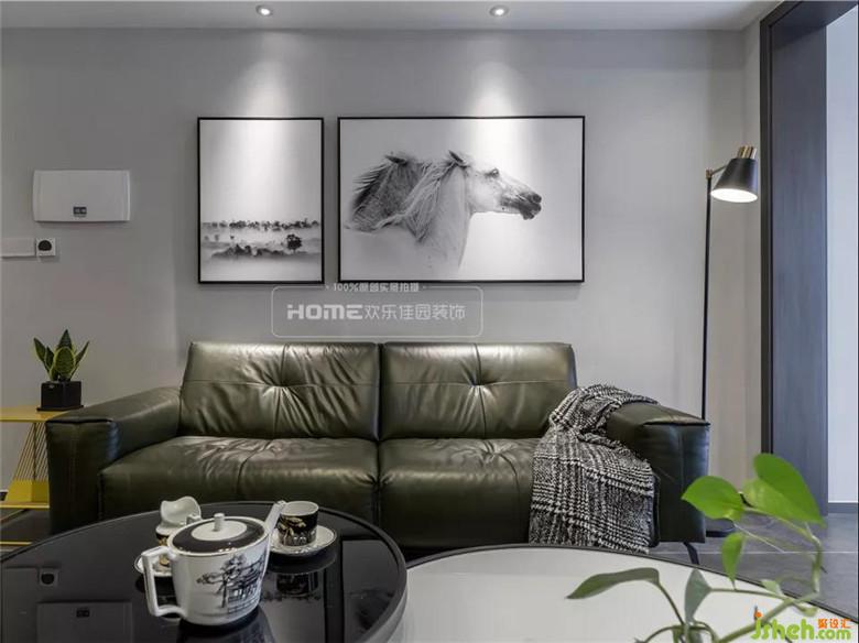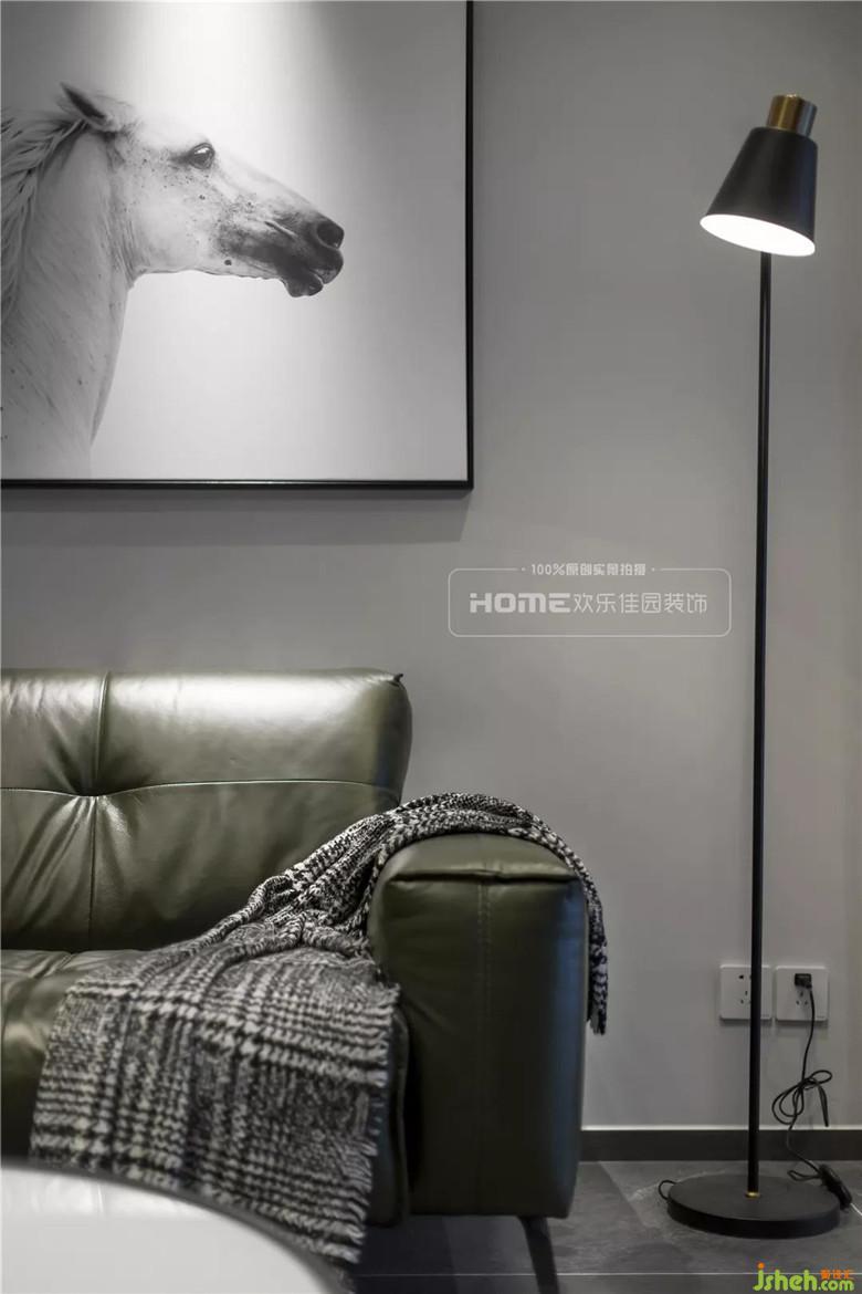 整體墻面以簡單的淺灰色為主基調(diào),隨遇而安的氛圍在步入客廳就能感受到,墨綠色的皮質(zhì)沙發(fā)毫無疑問是一大吸睛點(diǎn),提升逼格的同時(shí)限制了周圍顏色的鋪展,這正好是小二姐想要表達(dá)的生活方式,簡潔大氣,隨意卻不失精致感。