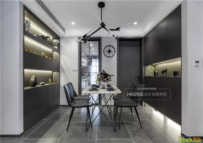 被儲物柜擁簇的餐廳空間,在不占用餐廳空間的前提下,設(shè)計師在兩側(cè)增加了餐邊柜和儲物柜,實用的細節(jié)處理,明確的功能劃分,在保證空間干凈利落的同時,滿足了小二姐的儲物需求。