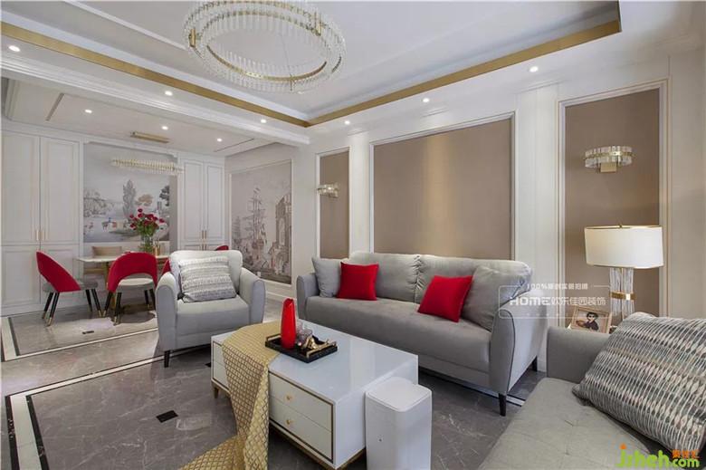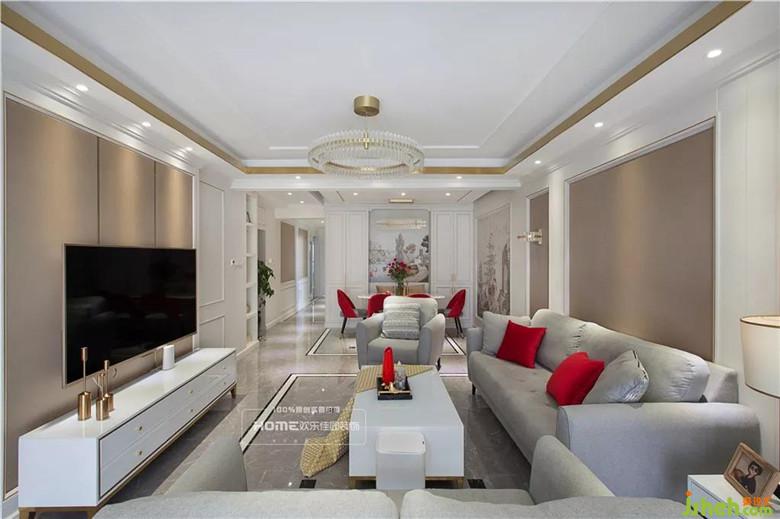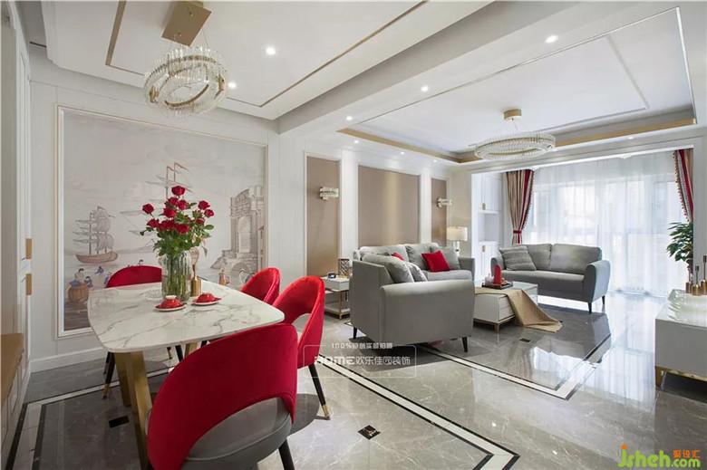 三口之家,女主人獨愛大紅色,男主人喜愛金色,所以整體裝修是以大紅色搭配金色的法式輕奢風(fēng)格;裝修公司空間并沒有大面積使用紅色和金色,大面的白色凸顯金色的精致時尚,灰色與紅色一冷一暖對比,營造驚艷空間。