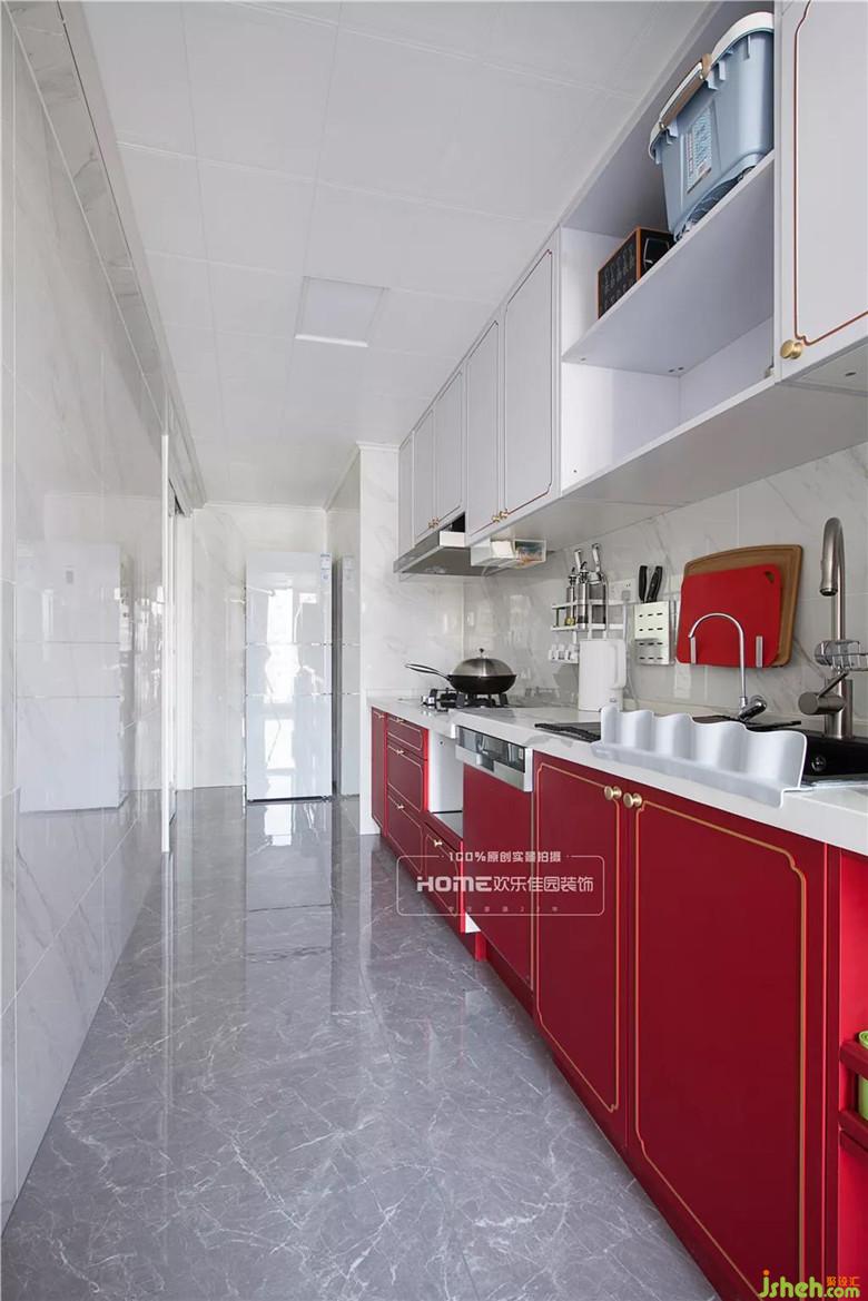 主臥室面積不大,要滿足女主人對更衣間的需求,改變了主臥室的進(jìn)門方向并設(shè)計(jì)成隱形門,直接用電視背景墻來分隔,留出了步入式更衣間的位置,增大了主臥室的面積。