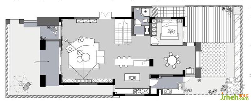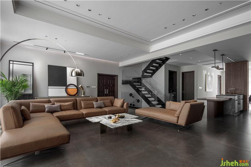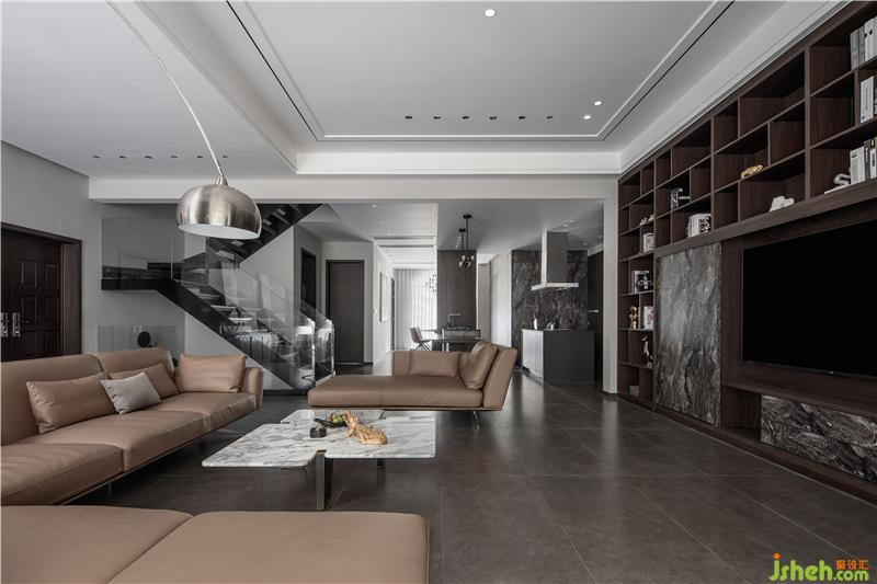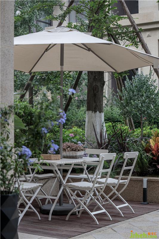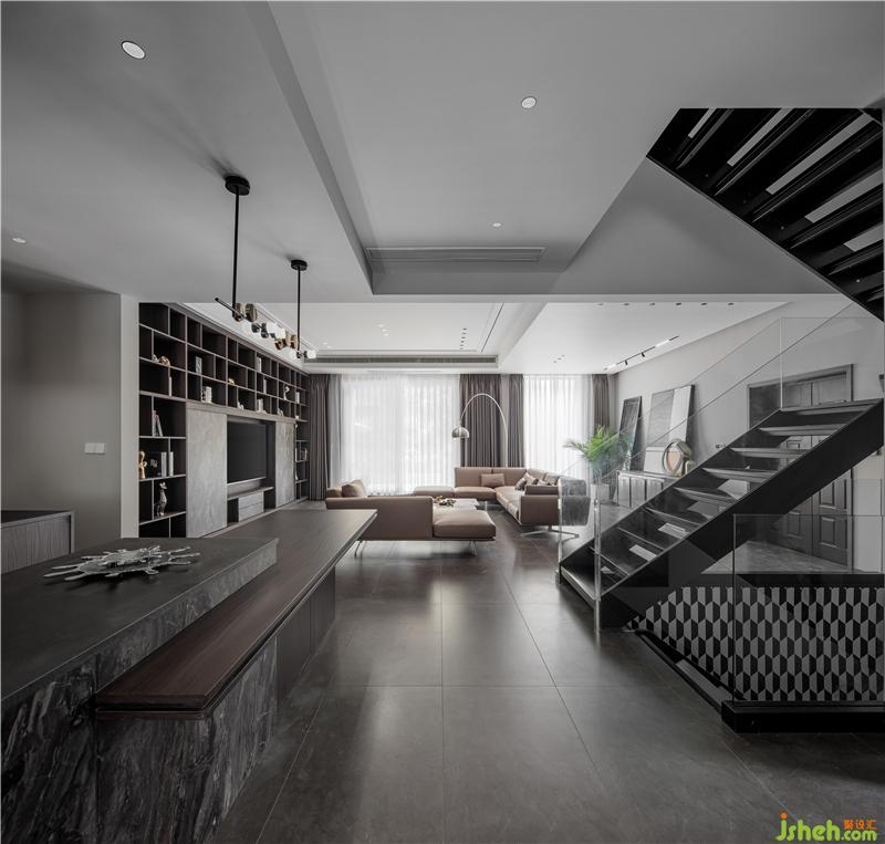 空間的分隔與利用;室內(nèi)設(shè)計師將一樓整個空間做了開放式布局,拆掉了原廚房,衛(wèi)生間的墻體,空間布局上重新進行分隔,原廚房衛(wèi)生間的空間改造成了西式廚房,中式廚房擴展到了外面,滿足了中西式廚房的生活功能需求,前后靠花園的墻體都做了采光的引入,加高加寬做了落地玻璃,同時也讓室外的花園空間借景入到了室內(nèi),
